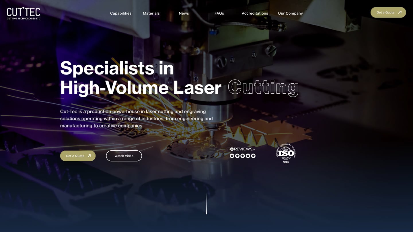 This helps Cut-Tec attract the right type of business enquiries, reducing time spent on less relevant leads.